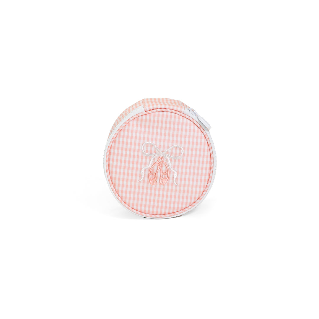 Our Embroidered Jewel Round is super lightweight and a perfect place to store your bits and baubles. It has elasticized compartments around the outer edge with a roomy middle compartment for bulkier pieces, like watches, bracelets and hair ties. This case can just as easily be used as a general catch-all for things like keys or earbuds. As a bonus, it looks pretty enough to leave out on your dresser or desk when you're not traveling.