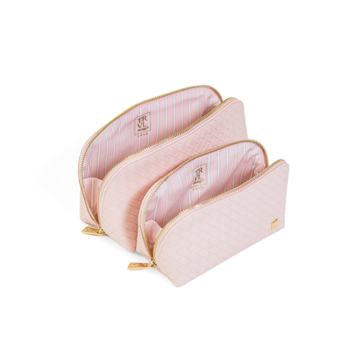 Our new Duo Case in Shell is crafted in our vegan woven saffiano and offered in our signature luxe colors—now with a brighter twist—this two-in-one set. Designed to carry it all: makeup, brushes, travel toiletries, and everyday essentials. Each pouch features a double zip closure that opens wide for easy access, while the slim design slips seamlessly into your daily bag for effortless beauty on the go.