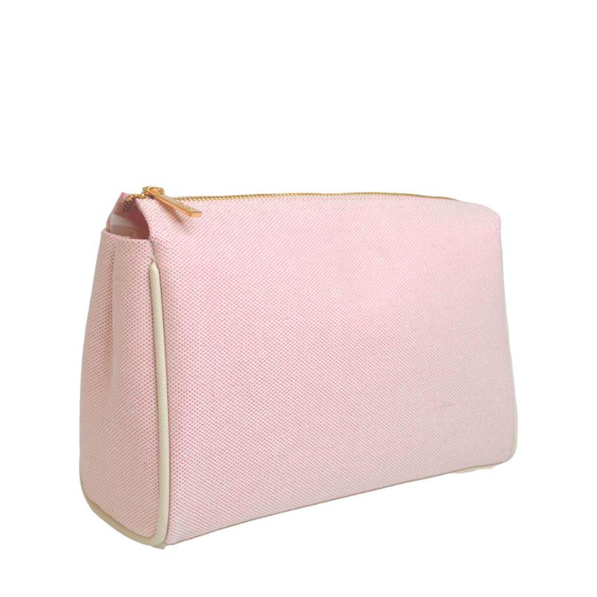 Medium Voyage - made in a Linen-poly blend and on the back coated in our signature matte enviro clear. This beautiful and chic material is stunning as a solid or as monogram. This bag has a large capacity for full size products - perfect for toiletries, makeup, sunscreen and more. The interior is wipeable and the bags are machine washable - spot clean, cold, gentle and line dry!