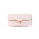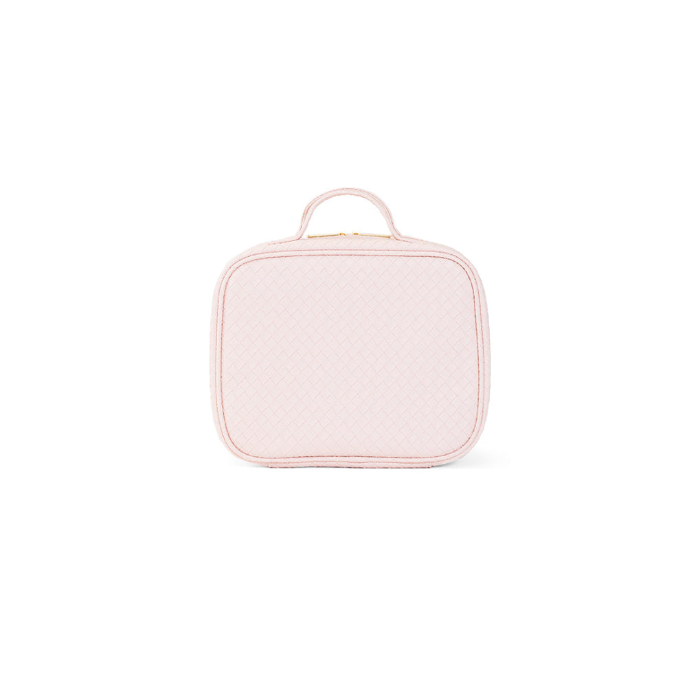 The Luxe Woven TRVL2 Cosmetic Case in Shell is a polished update to a classic—crafted in our textured vegan woven with a wipeable finish and lined in our coordinating pinstripe interior. Spacious and organized with 3 removable pouches, a zip pocket, and chic gold hardware, it’s the ultimate travel-ready essential.