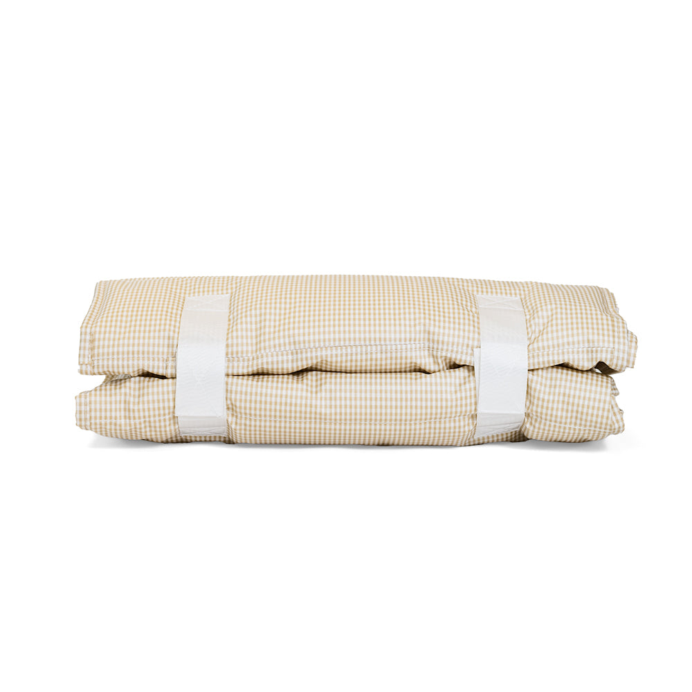 Introducing Our Rest Up! NAP MAT - GINGHAM KHAKI, the perfect solution for a comfortable and clean nap time! Made with our signature coated print outer that provides a wipeable and antimicrobial exterior. Our FLIP & FOLD design is easy to open and close for all ages. The full inside zip around cover ensures dirt, germs, and little creatures to stay on the outside and not on the plush fleece inside where your little ones lay. Each mat has a comfortable wide web shoulder strap for easy transport to and from school and for travel!