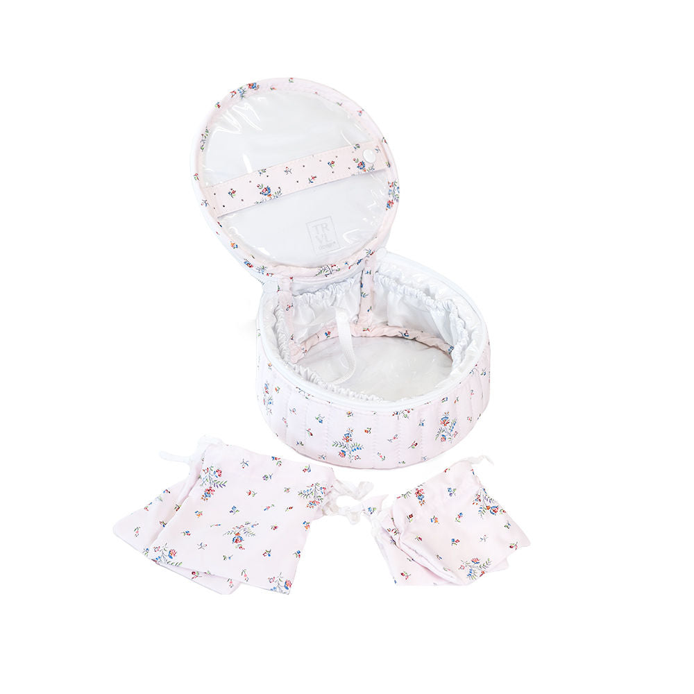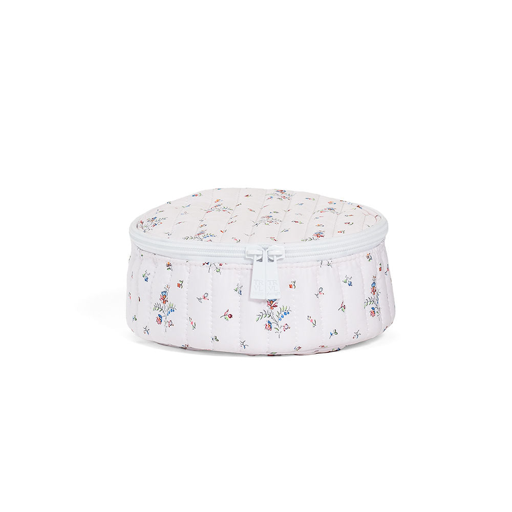 Our Quilted Jewel Round is super lightweight and a perfect place to store your bits and baubles. It opens up to offer ample room for earrings, necklaces, rings, and bracelets with elasticized compartments around the outer edge. This also comes with a snappable earing bar and 4 drawstring pouches that can be gathered together on a keeper. This case makes the perfect thoughtful gift for a lover of jewelry and accessories, or an ideal treat for yourself when you're off on your travels.