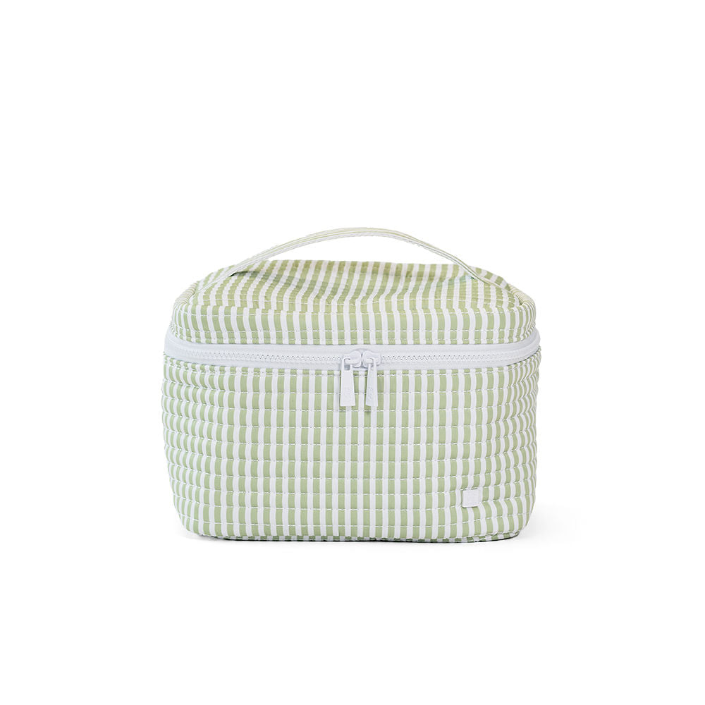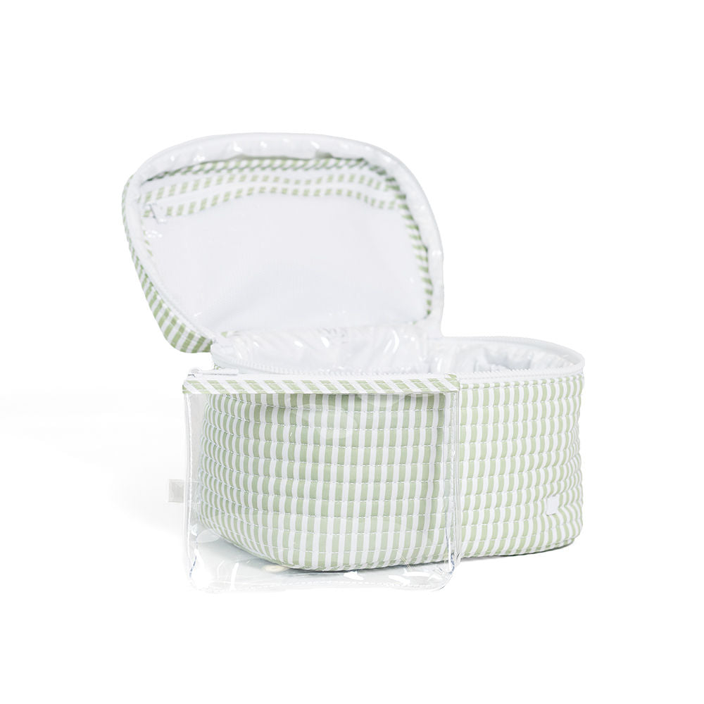 Our Quilted Train Set is super stylish and lightweight that will keep your cosmetics organized on the go. It opens up to offer ample room for makeup and beauty products, a zippered mesh pocket on the inside lid, elasticized compartments around the outer edge, and a removeable clear pouch. This set makes the perfect thoughtful gift for a lover of beauty and cosmetics or it can be an ideal treat for yourself when you're off on your travels.