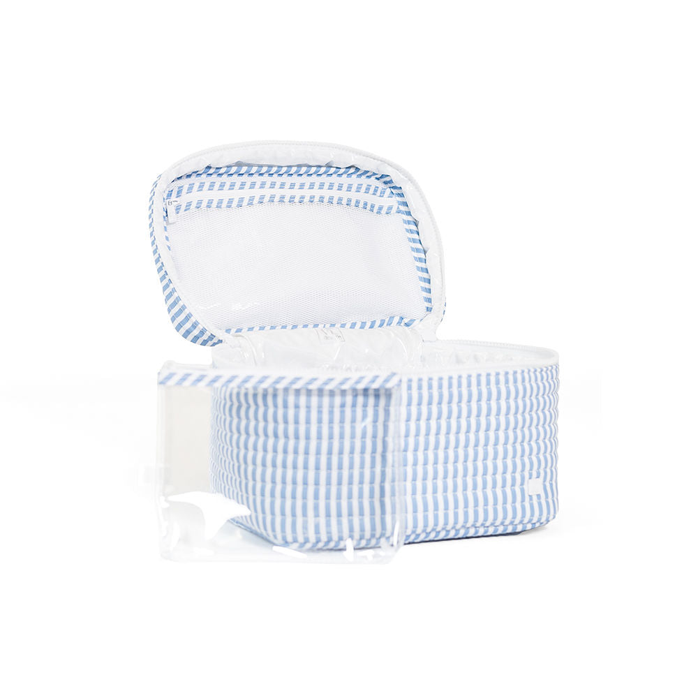 Our Quilted Train Set is super stylish and lightweight that will keep your cosmetics organized on the go. It opens up to offer ample room for makeup and beauty products, a zippered mesh pocket on the inside lid, elasticized compartments around the outer edge, and a removeable clear pouch. This set makes the perfect thoughtful gift for a lover of beauty and cosmetics or it can be an ideal treat for yourself when you're off on your travels.