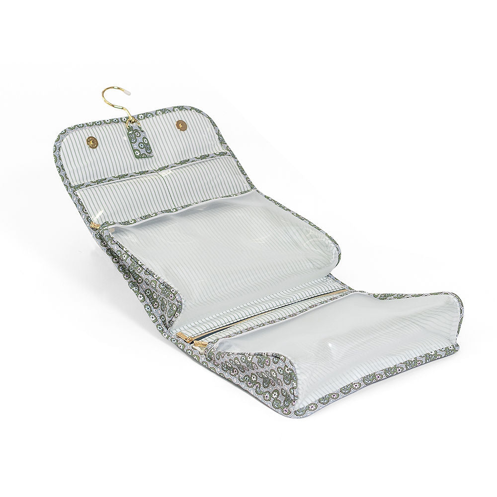 LUXE Hanging Toiletry Case SURREY with Green Pinstripe Liner