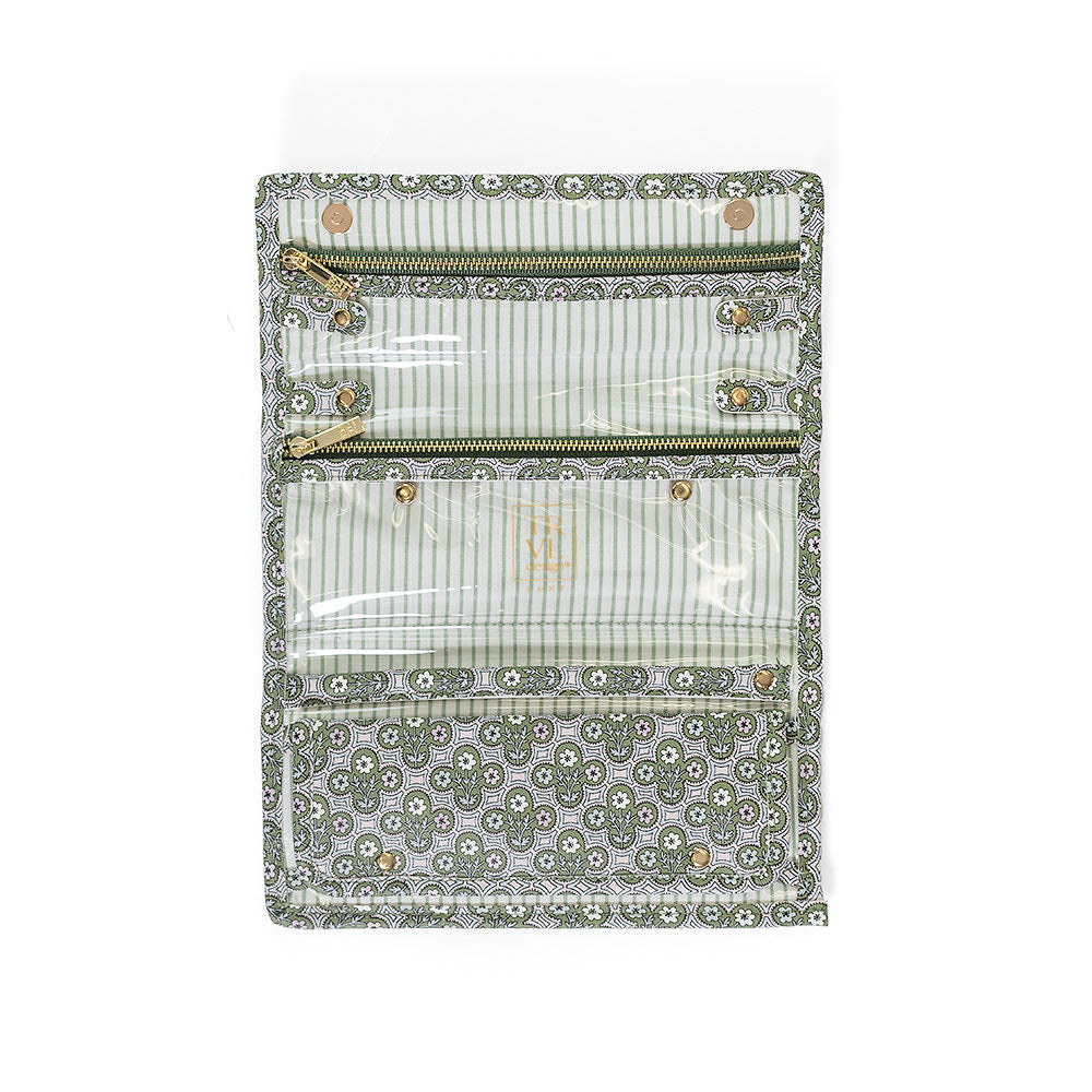 LUXE JEWELRY WALLET - SURREY with Green Pinstripe Liner