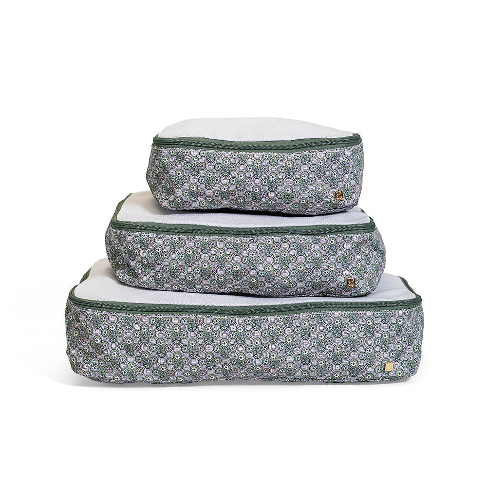 Packing Squads- are a TRVL Game changer!!Make packing organized and compact with these bags that can hold a weeks worth of clothing in a carry on! Designed in our signature prints in lightweight poly with a stretch mesh top - they fit perfectly into your luggage and drawers. TRVL made easy!