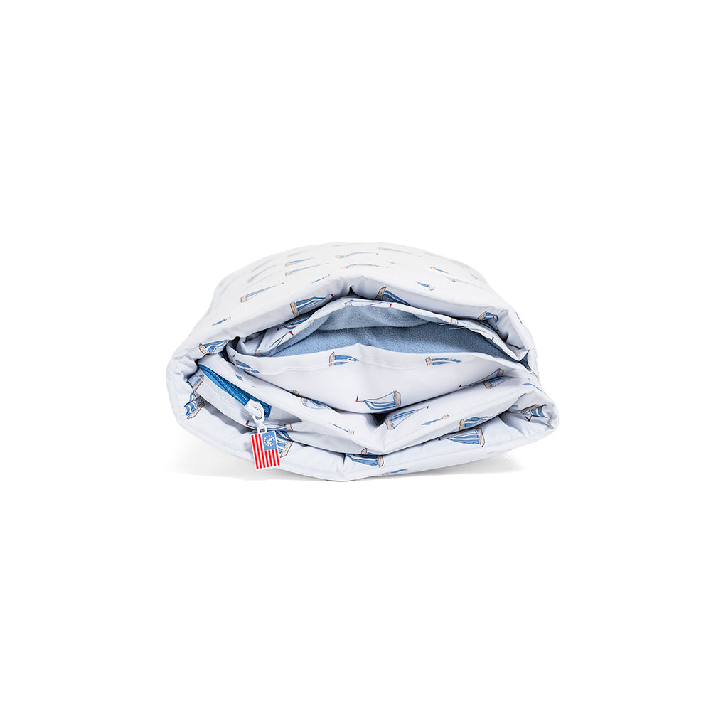 Introducing Our Rest Up! NAP MAT - PIMLICO PLAID BLUE, the perfect solution for a comfortable and clean nap time! Made with our signature coated print outer that provides a wipeable and antimicrobial exterior. Our FLIP & FOLD design is easy to open and close for all ages. The full inside zip around cover ensures dirt, germs, and little creatures to stay on the outside and not on the plush fleece inside where your little ones lay. Each mat has a comfortable wide web shoulder strap for easy transport to and from school and for travel!