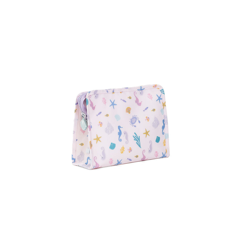 Our best-selling Roadies are our BFFs in the pouch world! Available in 3 sizes, our Large Roadie is made in a cotton gingham with a thin Eco-friendly matte coating, an inside slip pocket and exterior snap open zip tabs for a wider opening and an easier access.