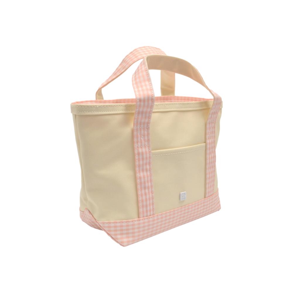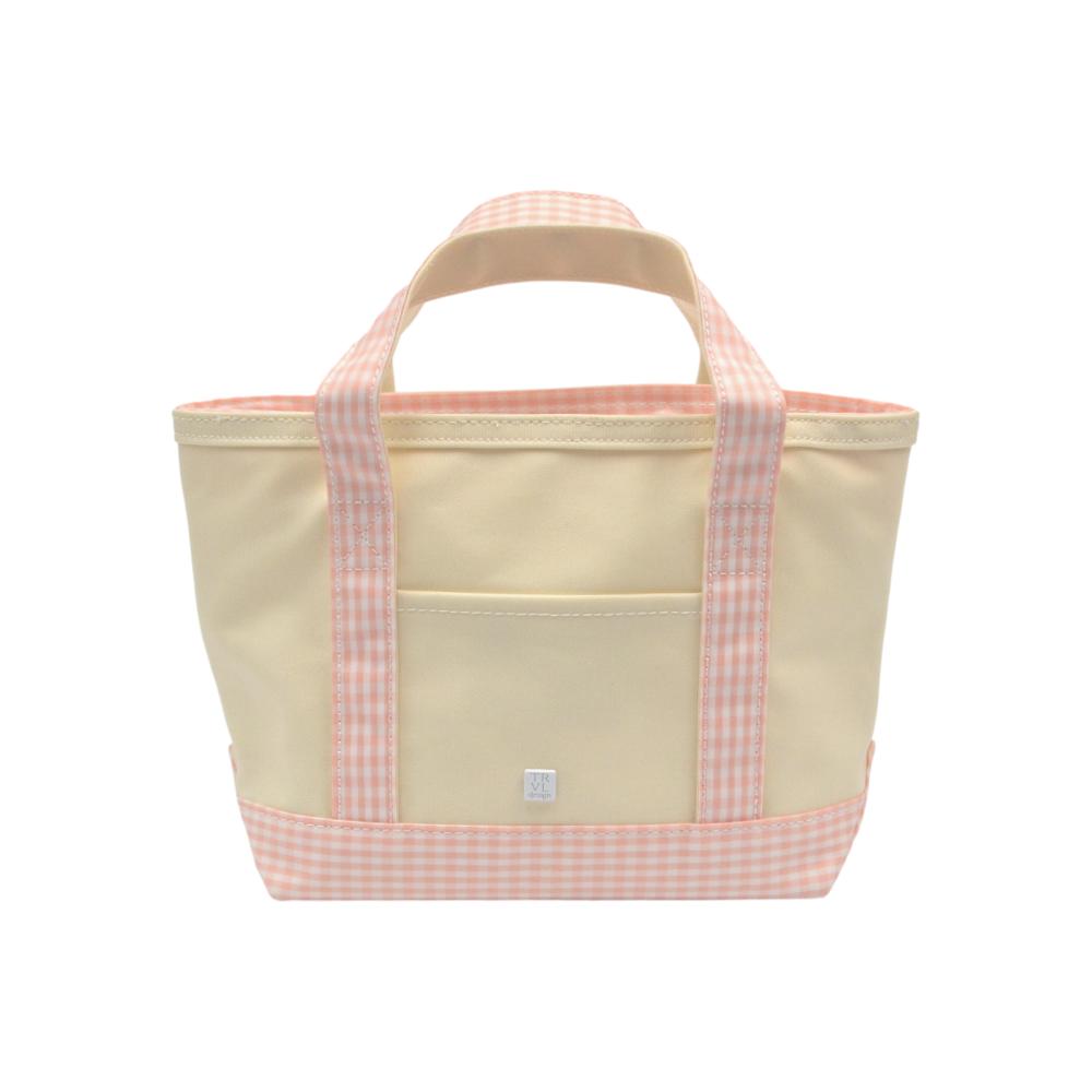 MINI TOTE - COATED CANVAS NATURAL With GINGHAM TAFFY TRIM